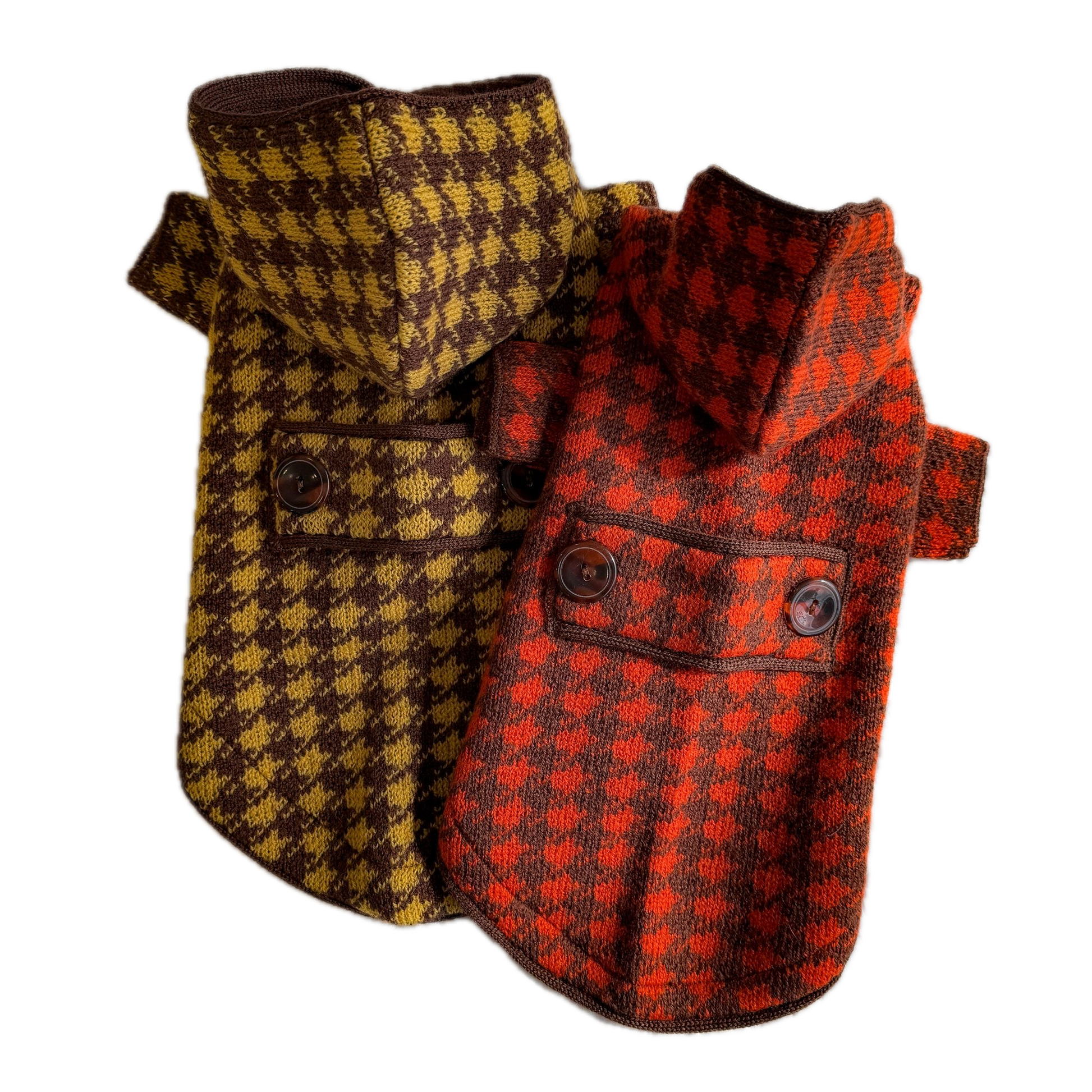 Aggiungi un tocco di stile al guardaroba del tuo cane con il cappottino pied de poule! Realizzato in lana merinos di alta qualità, questo cappottino non solo terrà il tuo cane al caldo nei giorni freddi, ma lo farà anche risaltare con il suo design alla moda. Il regalo perfetto per il tuo amico peloso!
